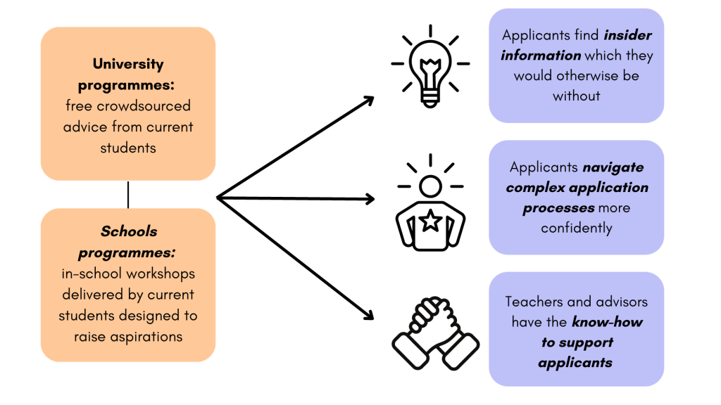 By empowering current university students to share their first-hand advice about university applications, we can help young people to feel more confident about going to university, and make a more informed application.